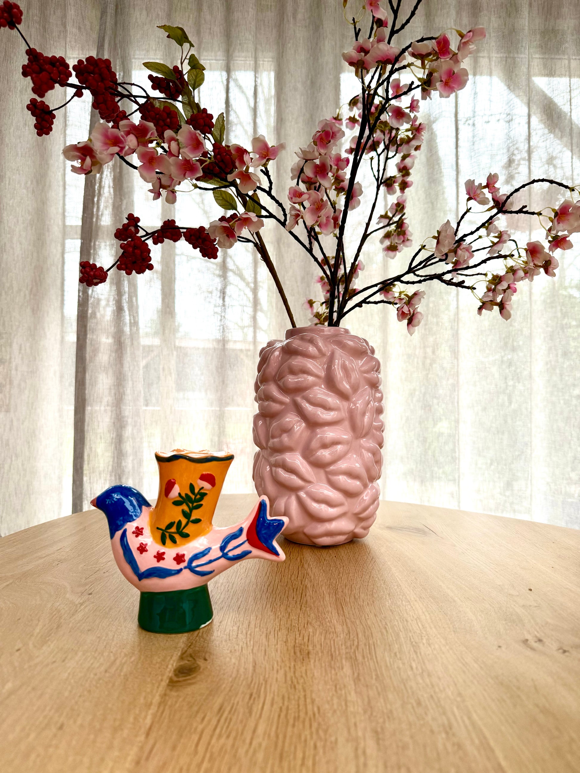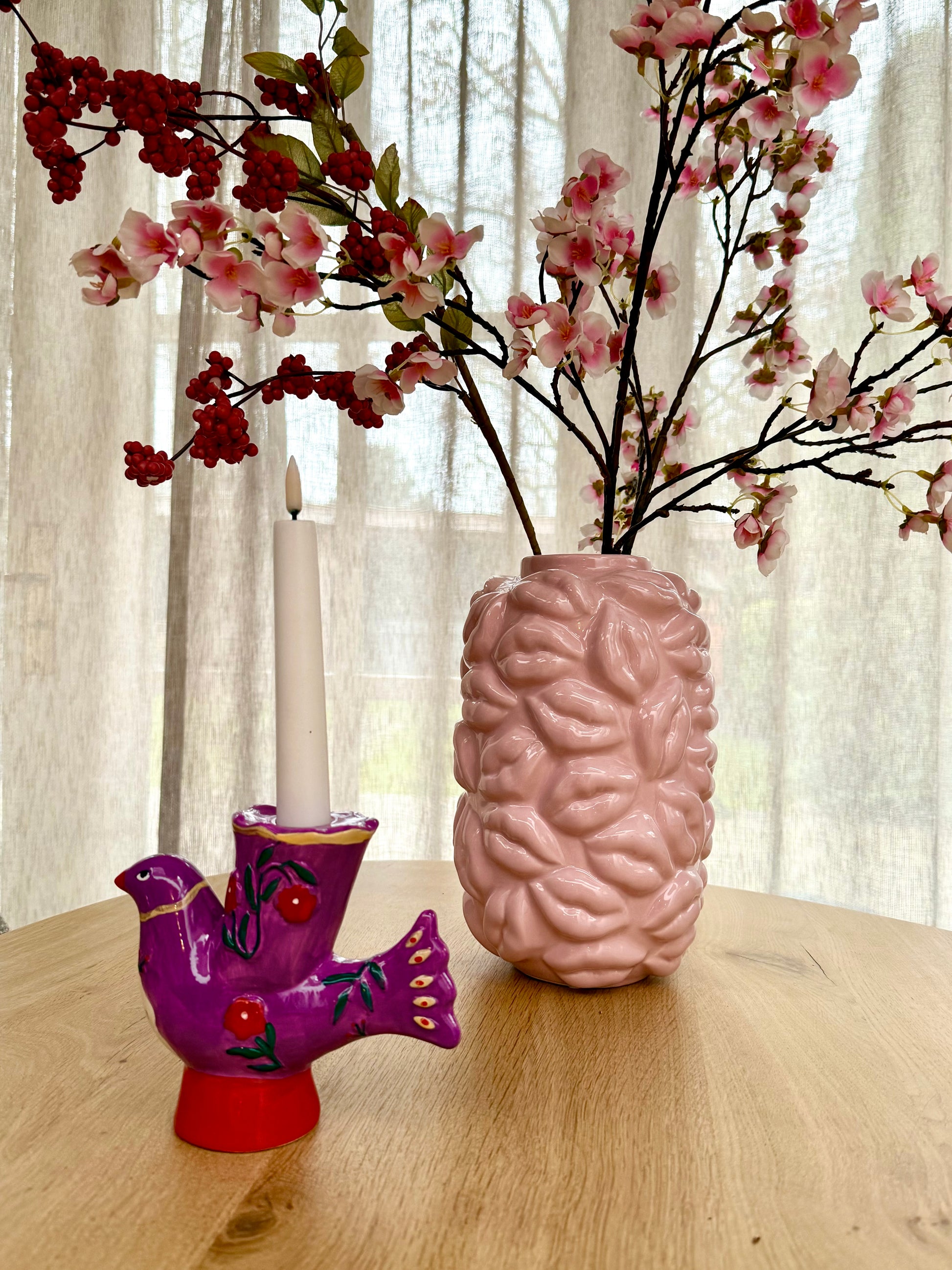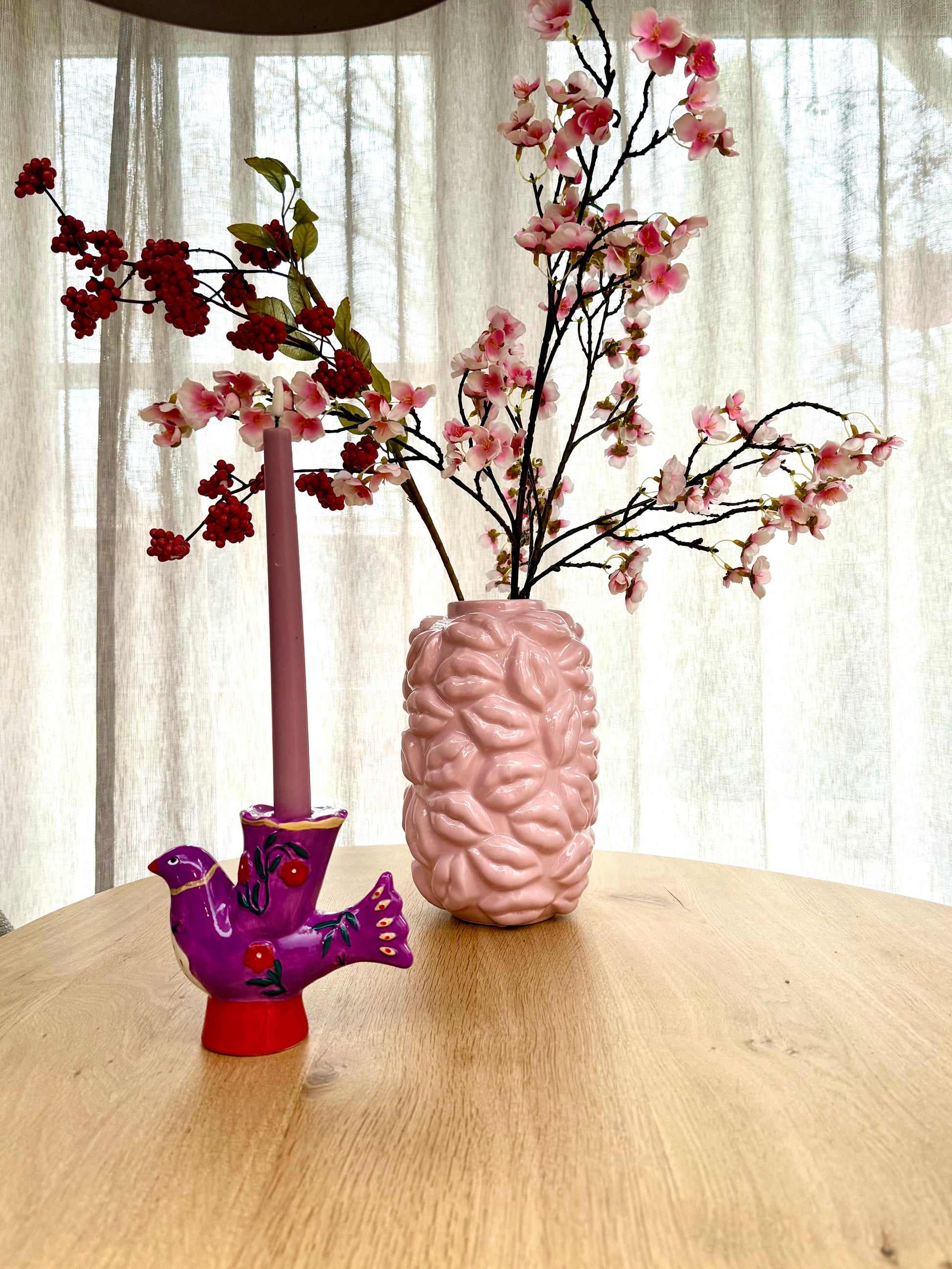 De kandelaar vogel is zo’n item dat meteen sfeer brengt in huis. Een subtiele blikvanger met karakter. Deze bijzondere kandelaar is verkrijgbaar in twee krachtige kleurcombinaties: paars met rood en blauw met geel. Twee varianten die ieder op hun eigen manier warmte en energie toevoegen aan je interieur.
