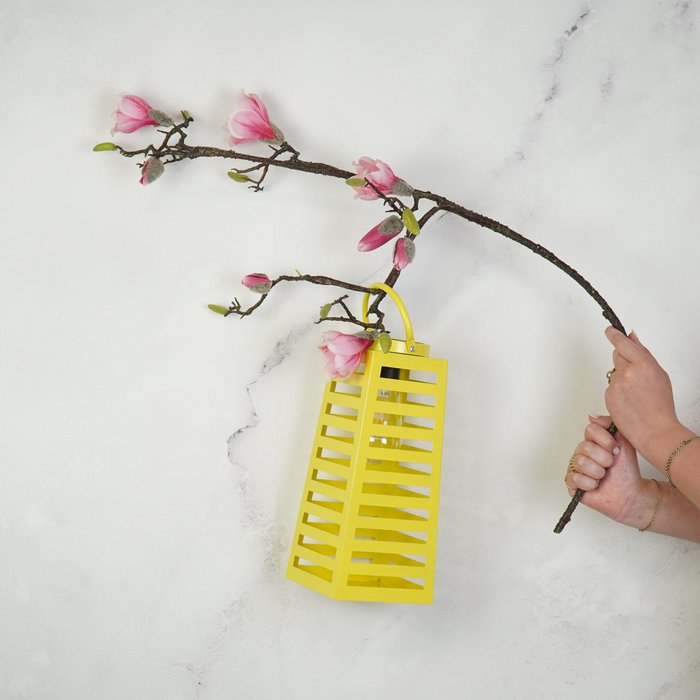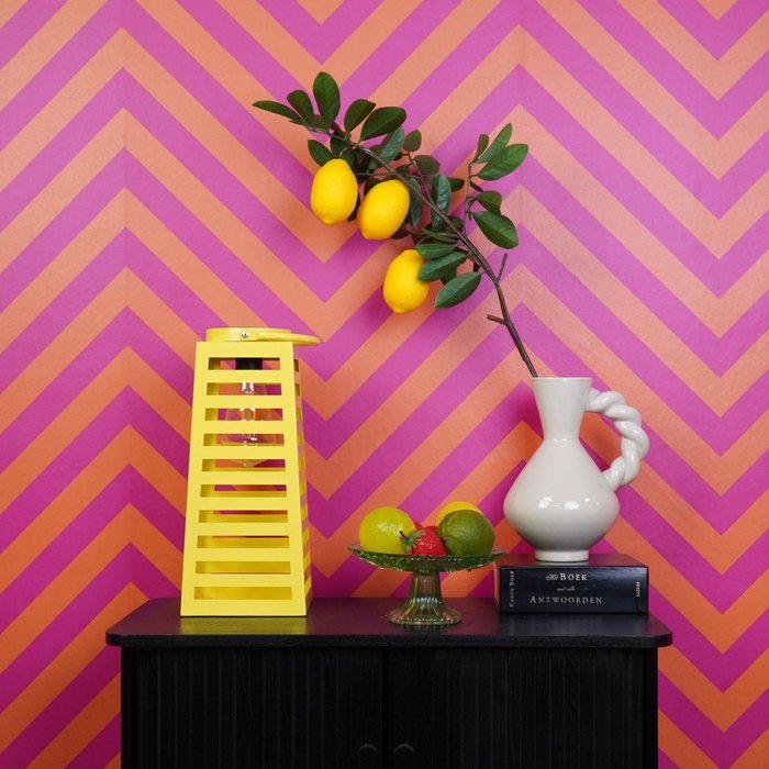 De lantaarn is verkrijgbaar in roze, geel en lila. Kleuren die ook overdag iets toevoegen aan je buitenruimte. Zelfs als hij niet brandt, is het een vrolijk object om te zien. En dat vind ik belangrijk: buitenaccessoires moeten niet alleen functioneel zijn, maar ook gewoon leuk.